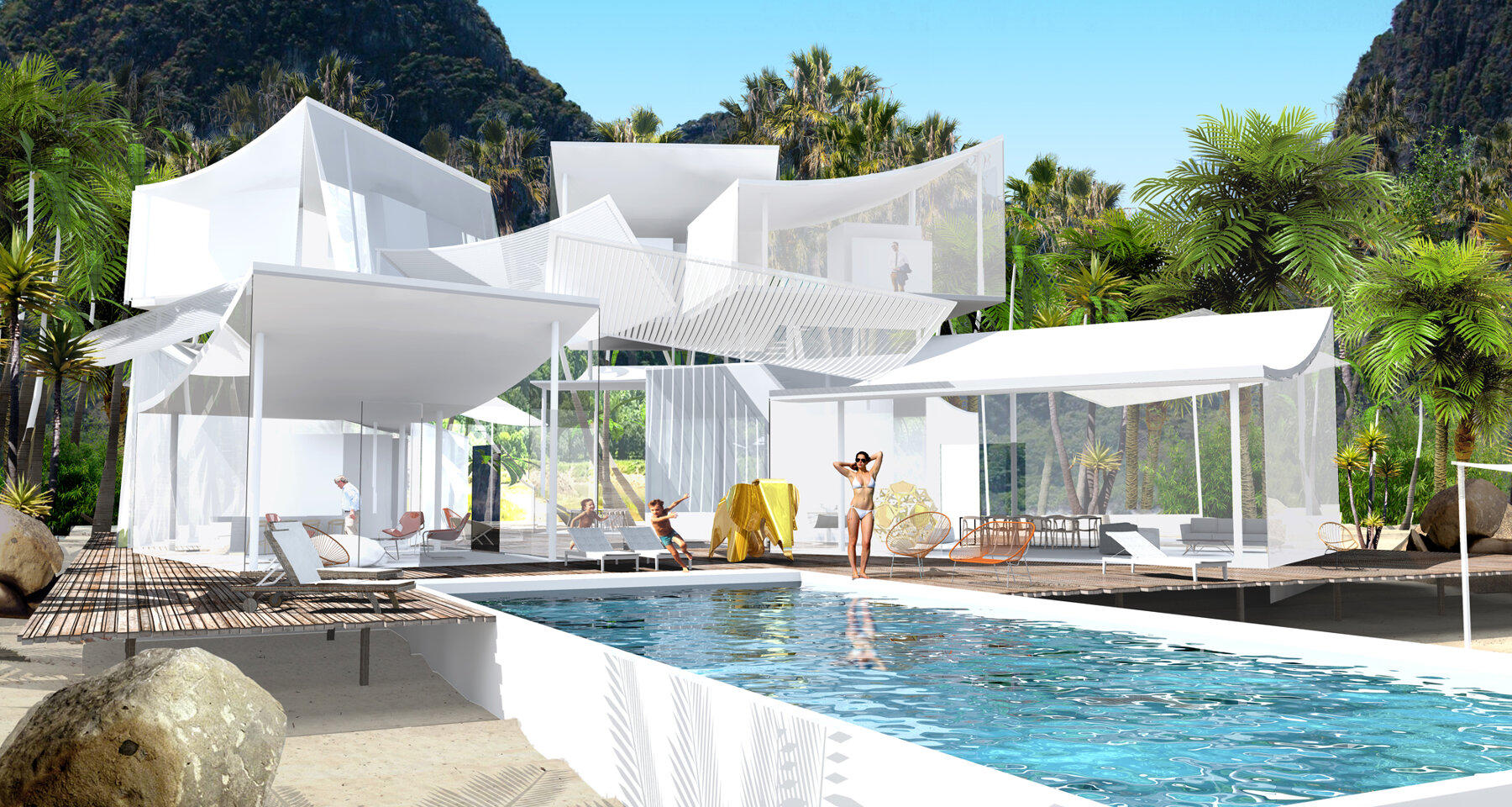 Le projet est la rencontre entre la maison traditionnelle thaïlandaise et la pensée morphologique et technique contemporaine de l’architecture française; entre les usages des autochtones et de la culture française.