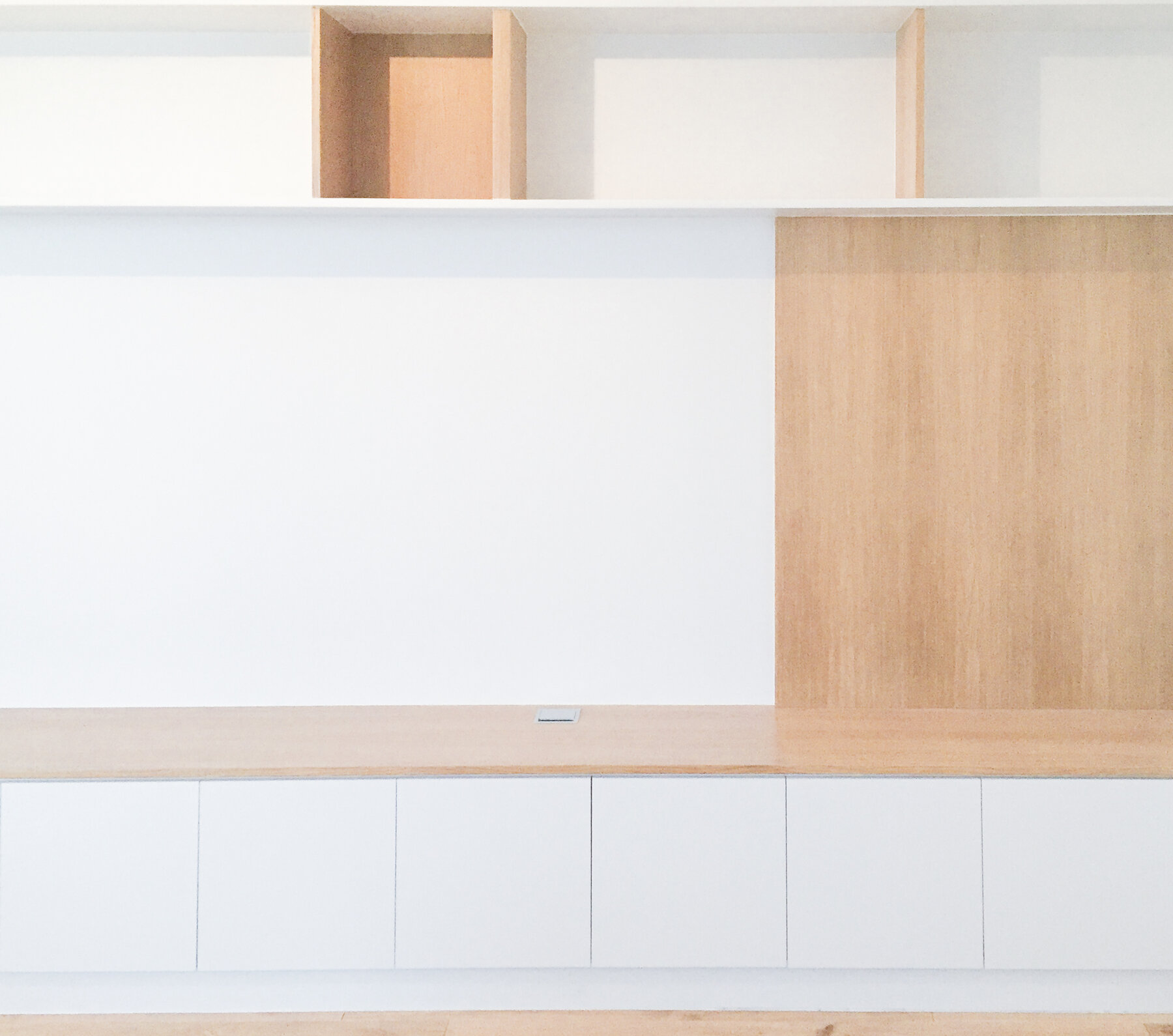 La rénovation de cet appartement de 65m² au 9 ème étage d'un immeuble des années 70 possède une vue imprenable sur l'ouest Parisien. La mise en oeuvre des matériaux, les aménagements cherchent à orienter l'usager vers cette scène urbaine. Le projet vise à optimiser l'espace d'entrée de l'appartement, initialement dispendieux, en ménageant des espaces de rangements fonctionnels.