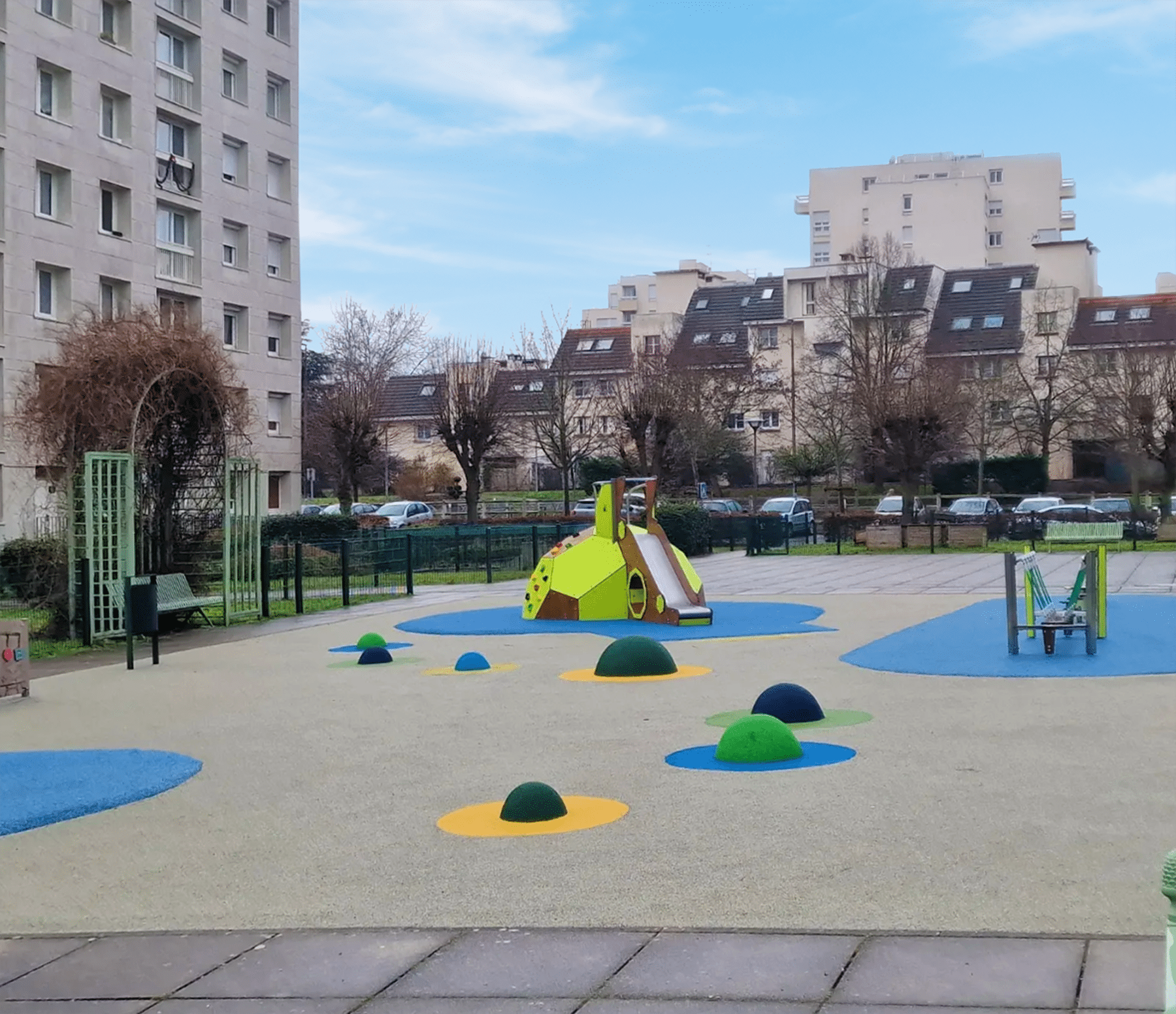 Ce projet de rénovation et de création d'aires de jeux, s'étendant sur un total de 1120 m², réparties stratégiquement au cœur de plusieurs quartiers emblématiques de la commune d'Ermont.