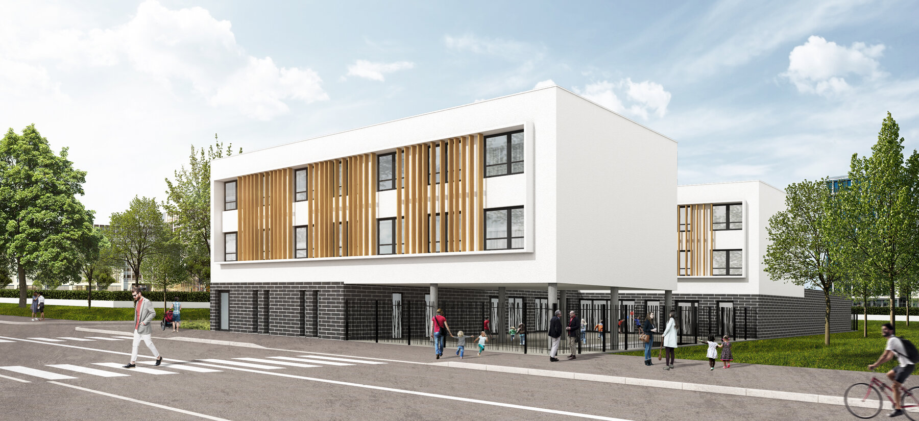 Le tout nouveau bâtiment de l’association AFT de Villiers-Le-Bel bénéficiera d’une surface de 1500m² intégrant un restaurant, des salles de classes, ainsi que des espaces polyvalent et des bureaux. La surface réduite et la forme en longueur de la parcelle, ont permis de concevoir une construction à plusieurs façades chacune surplombant des espaces divers.