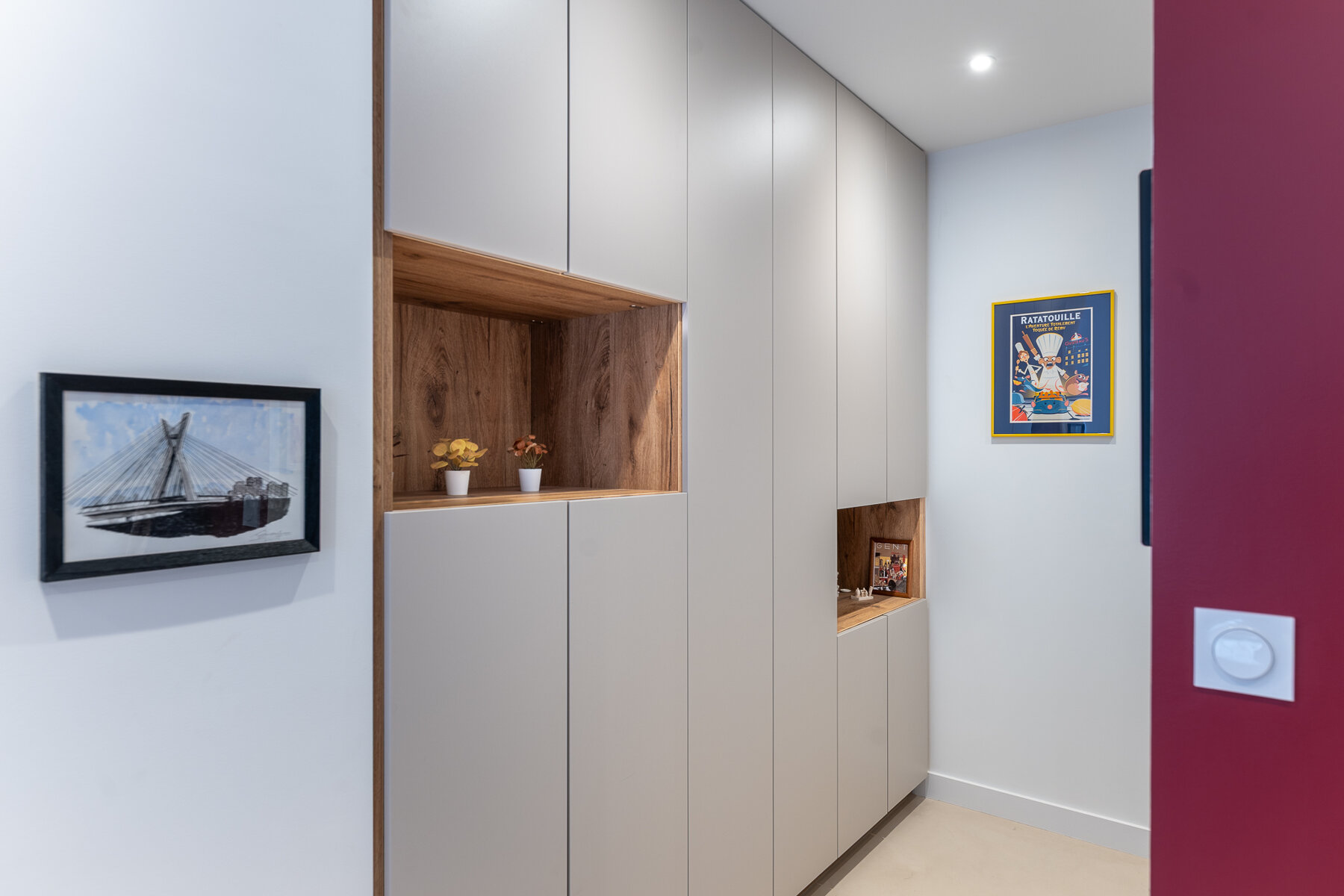 Grand appartement familial qui a été entièrement redécoré et aménagé. Quelques modifications de cloisonnement ont été apportées, mais les éléments mobiliers sont au cœur du projet.
