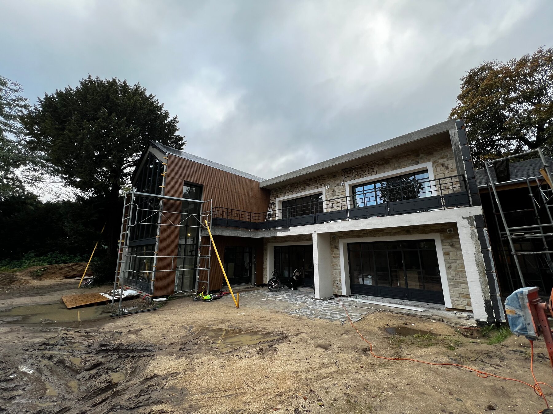Surélévation totale de la maison existante, changement des façades, 2 extensions, et aménagement d'une piscine avec sa terrasse et sa cuisine extérieure. Réaménagement complet intérieur et rénovation