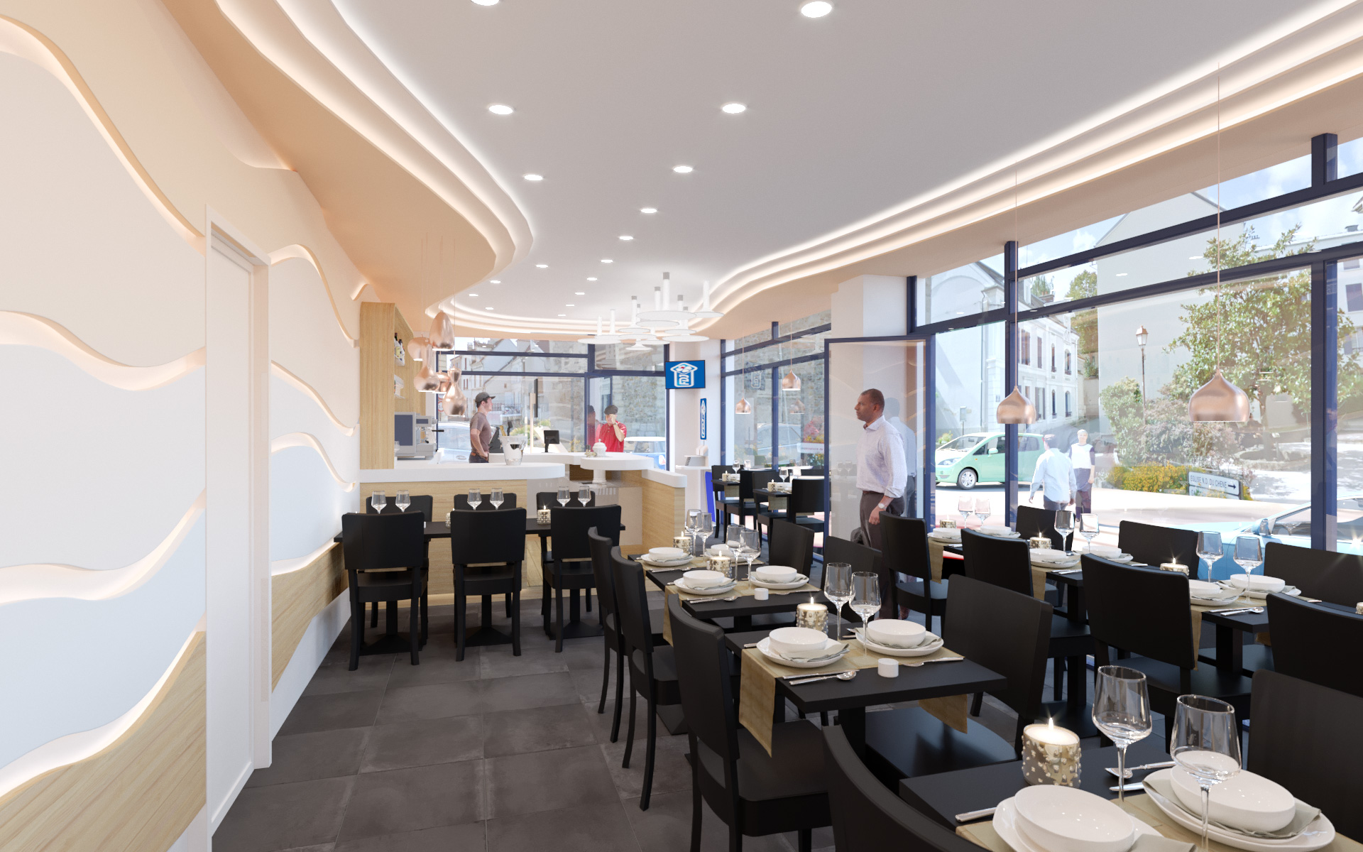 Grâce à lui, l’espace clientèle (salle de restaurant, sanitaires, terrasse et devanture) est en parfaite harmonie, tant au niveau des couleurs que des matériaux, pour apporter du charme, de la cohérence et un véritable âme à votre brasserie.